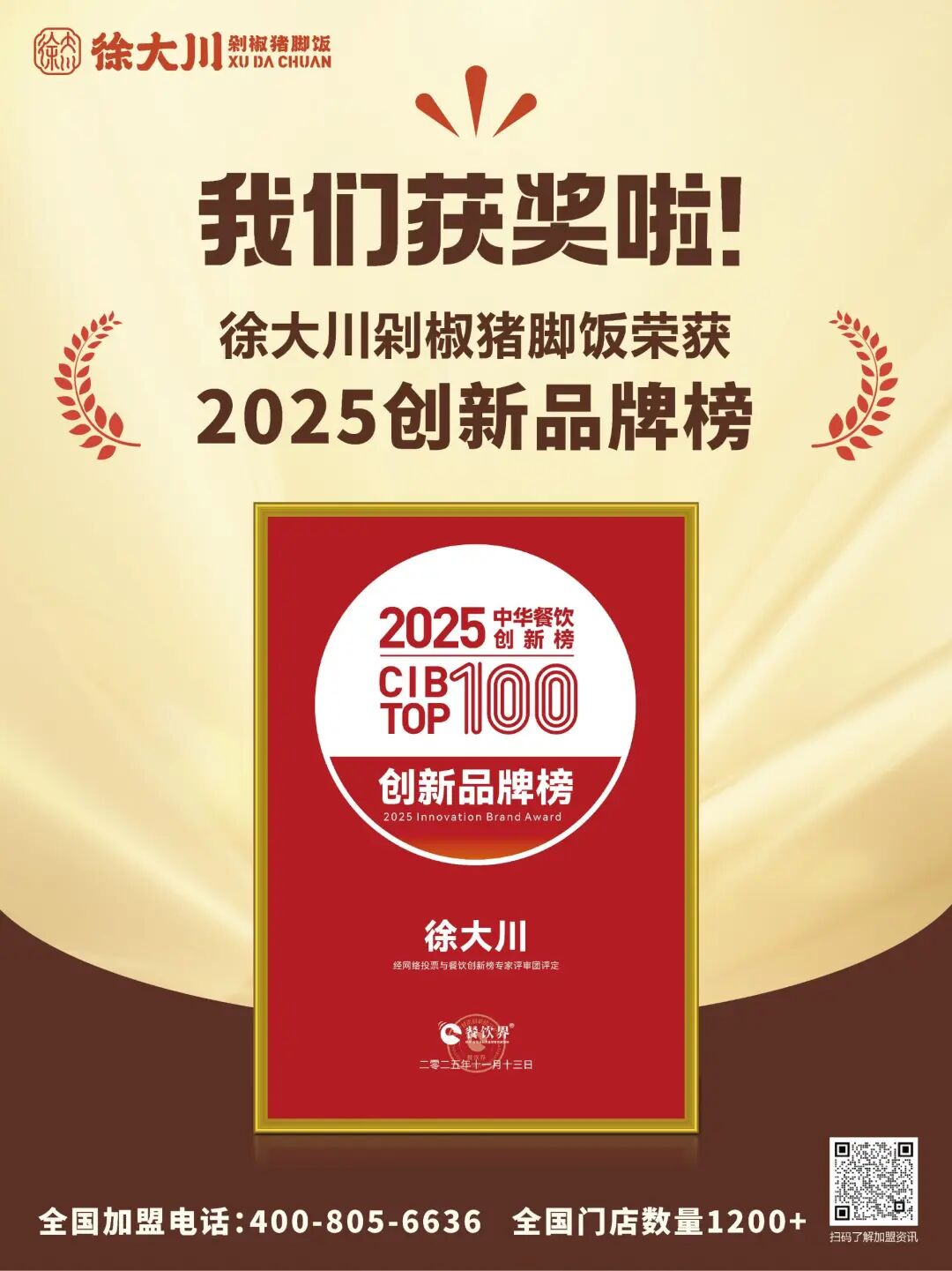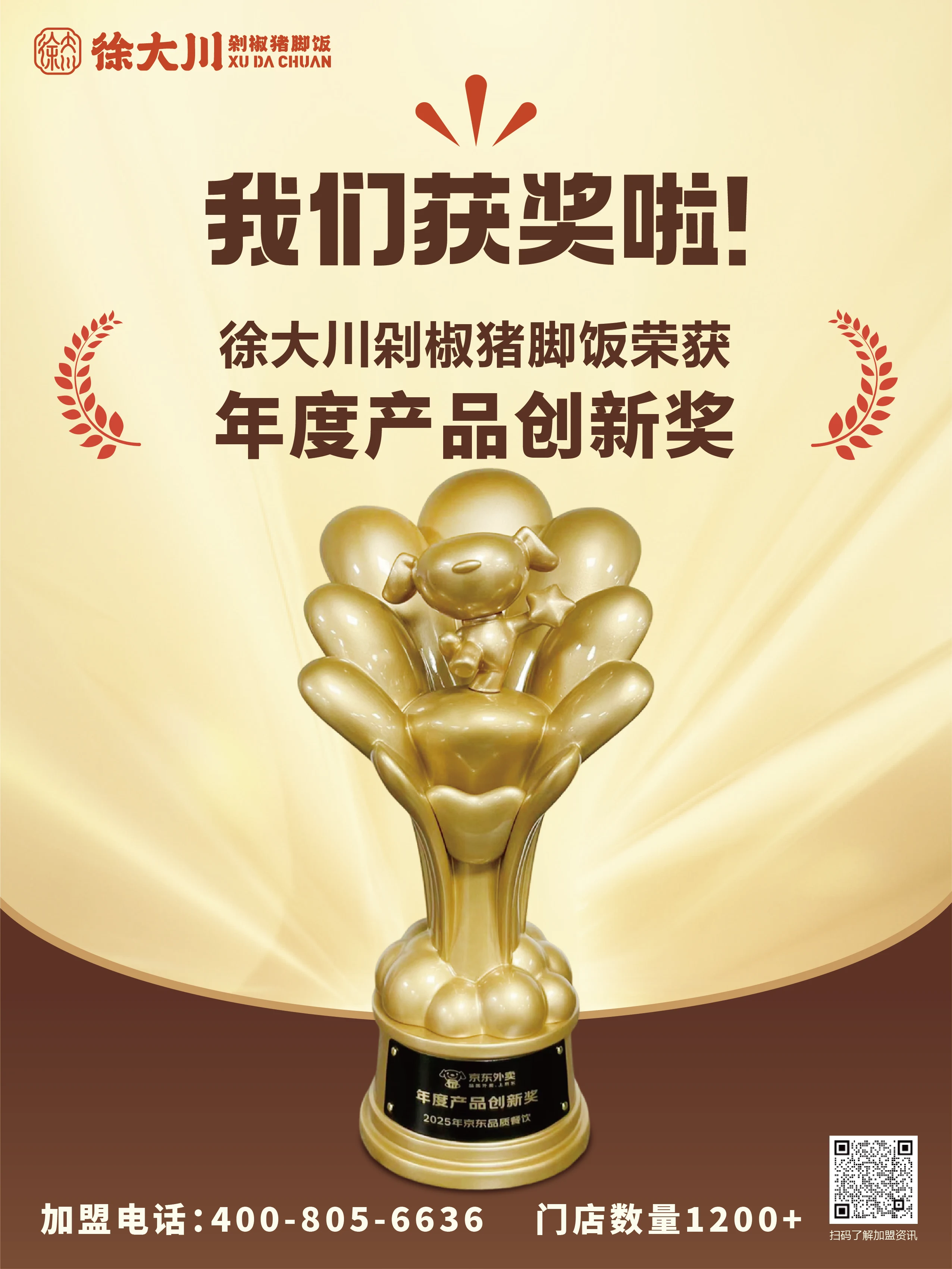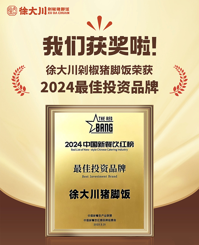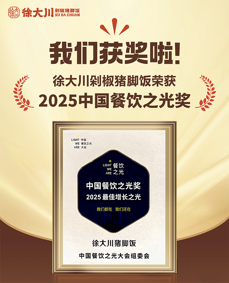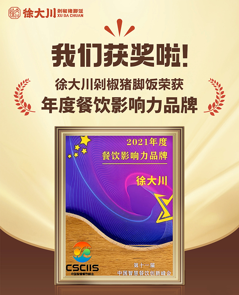 公司推出徐大川剁椒猪脚饭品牌后,得到了市场认可,好评如潮。该项目荣获中国餐博会外卖品牌领航金奖、最具影响力奖、最具投资价值奖、新锐优质品牌、2022年度餐饮界创新品牌榜、美团外卖优质商家、中国企业联合发展推广中心优秀项目奖、2023数字供应链金融品牌峰会潜力合作品牌、2023中国餐饮新媒体营销峰会最具投资价值品牌奖等多个奖项。